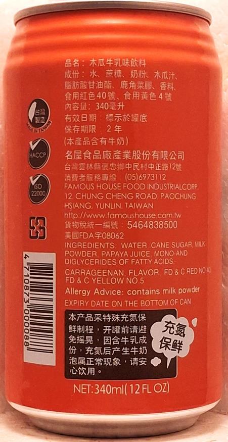 TAIWAN-Milk -papaya-340mL-Taiwan-2021