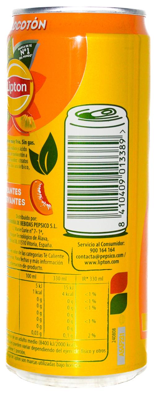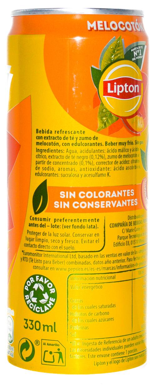 LIPTON-Ice tea -peach (diet)-330mL-MARCA DE TÉ Nº 1 DEL-Spain-2025